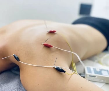 Tratamiento de puntos gatillo y contracturas profundas mediante punción seca y electropunción para alivio rápido del dolor.